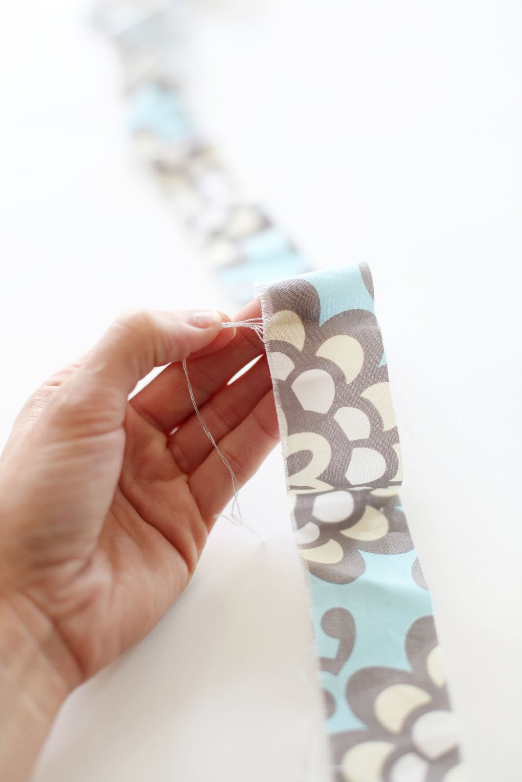 Twist the fabric away from the roll while continuing to wrap it around the roll. As you keep doing this, apply a few dots of glue along the way to keep the flower secure and in place.